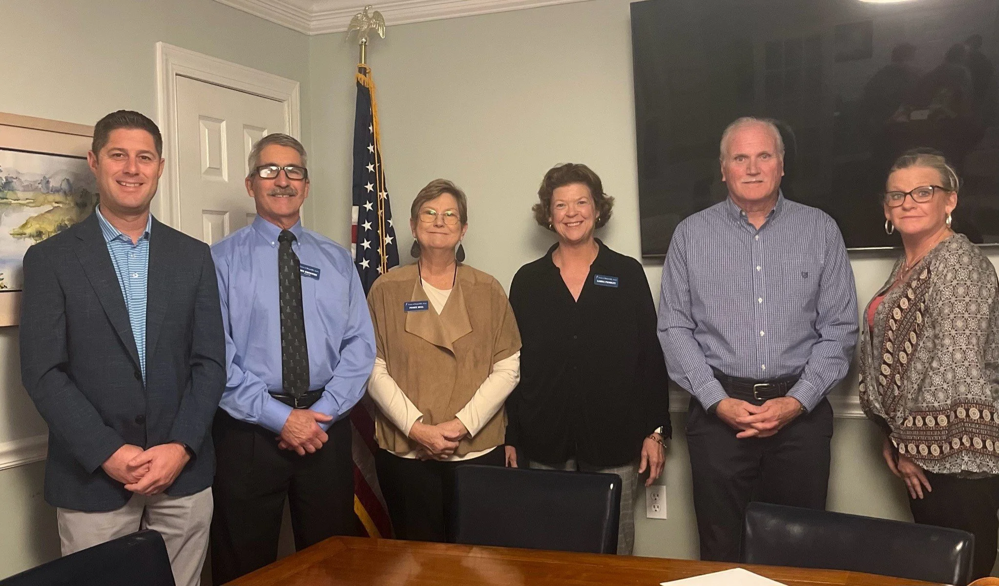 From Left to Right: Councilman - Brian Palliser, Mayor - Dave Buonviri, Mayor Pro Tempore and Treasurer - Peggy Bell, Councilwoman - Laura Pendley, Councilman - Brian McIntyre, Town Clerk and Office Manager - Jennifer Newbold